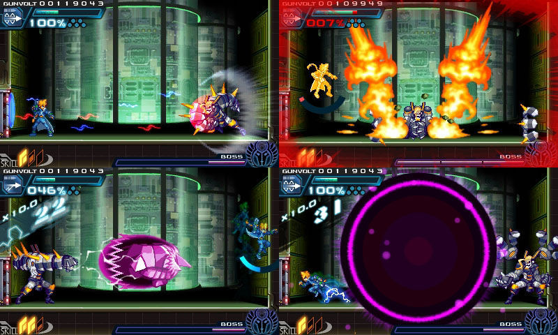 La historia detrás de este Azure Striker Gunvolt es bastante sencilla (viene a ser una especie de X-Men a la japonesa). Nuestro protagonista, Gunvolt, es un adepto, uno de los humanos con superpoderes que están siendo vigilados por una malvada corporación llamada Sumeragi. Pertenece a un grupo de resistencia llamado QUILL, pero en una misión tiene dos opciones, hacer caso a QUILL, o a su instinto, y separarse de sus antiguos compañeros. Hace lo segundo, y ahora trabaja para QUILL como autónomo, lo que a efectos prácticos es casi lo mismo, pero le otorga más libertad.