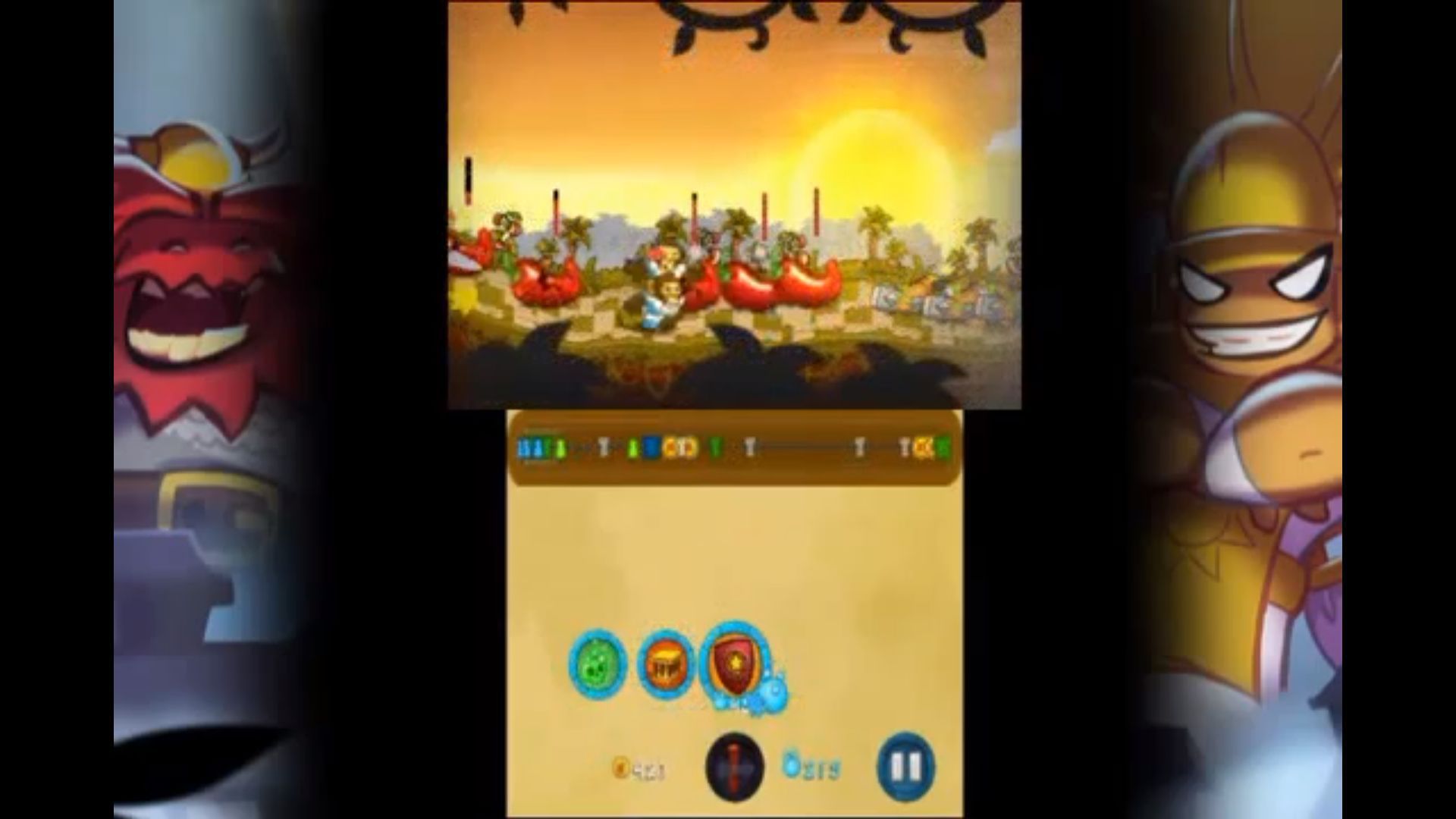 Hasta ahora hemos hablado de cómo es la jugabilidad y de todo lo que se compone, pero no hemos comentado el mayor problema que tiene Swords & Soldiers 3D. Podemos resumirlo diciendo que es la peor adaptación que hemos visto de un juego de otra consola hasta la 3DS, responsabilidad absoluta de la desarrolladora de Hong Kong, Circle Entertainment. El estudio original, Ronimo Games, hizo un estupendo trabajo tanto a nivel visual como a nivel sonoro y de interfaz, que los hongkoneses se han encargado de destrozar. Si por un lado tenemos problemas con la adaptación de los gráficos, que se ven absolutamente borrosos y desfigurados, con deformaciones en las texturas 2D causadas por poner imágenes de mayor resolución y luego encogerlas en pantalla, estropeando una buena parte del encanto del original. Es una pena, porque la implementación 3D estereoscópica en la pantalla de arriba es bastante buena, donde se nota que la desarrolladora ha dedicado mucho esfuerzo.