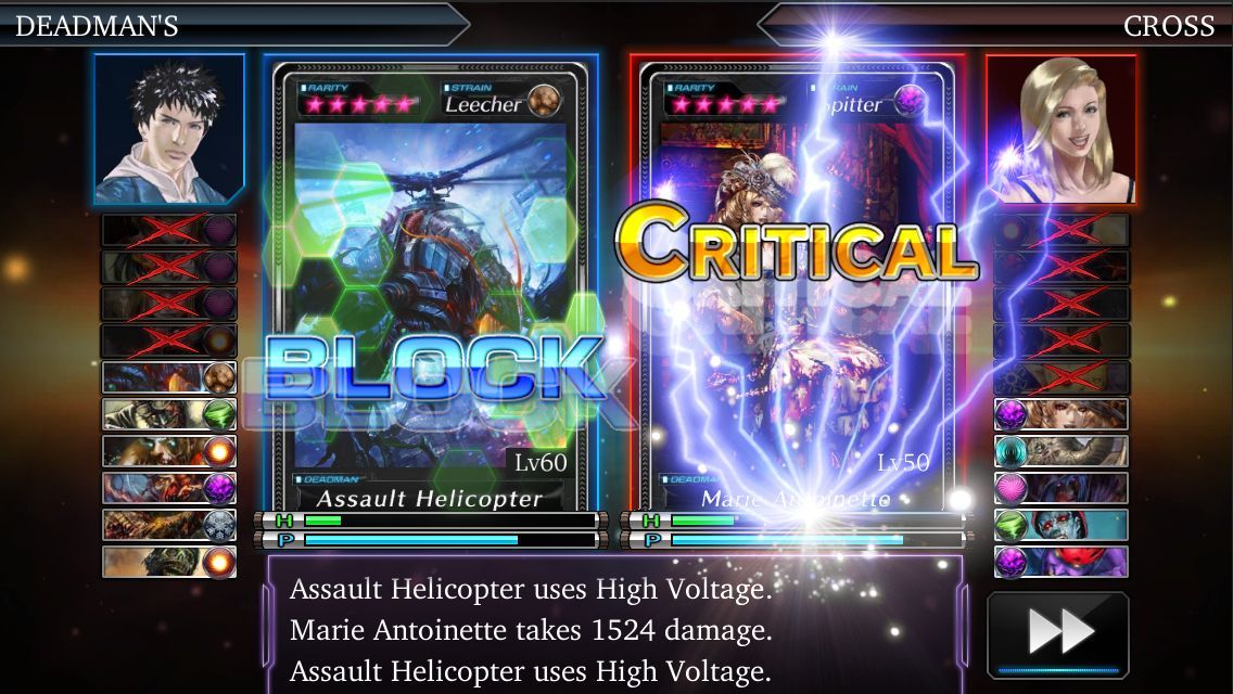La excusa argumental de este Deadman´s Cross es precisamente eso, un pretexto con el buscar que el jugador se implique en la mecánica del juego, que como os comentábamos al comienzo del análisis, es un curioso batiburrillo de ingredientes cogidos de aquí y allá. Preparaos pues para programas de televisión donde jugadores enfrentan sus hordas de no muertos en pos de la audiencia, intrigas y personajes con una faceta anime y nipona muy clara. El principio de Deadman´s Cross va de la mano del típico tutorial. Durante los primeros compases, nos encontraremos aprendiendo la mecánica básica del juego, que no es otra que la de recolectar, aglutinar criaturas y cartas y combatir. Las tres grandes facetas están muy bien entrelazadas, pero la app no termina de cuajar ni lucir especialmente en ninguna de ellas.