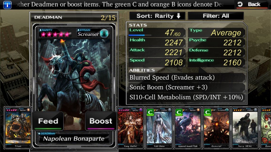 El combate, en Deadman´s Cross, se resuelve de forma automática. Son encuentros esporádicos realizados a través de luchas de cartas, que son tan rápidas que no tendremos opción a saber lo que pasa realmente en la pantalla. Cada carta tiene una resistencia y un ataque, y el juego resuelve los combates de forma casi instantánea, con lo que la estrategia se reduce a una simple cuestión: comprar o conseguir las mejores cartas y olvidarse de todo. Da lo mismo como queramos plantear el juego, o si juguemos contra la máquina u otro jugador a través de internet, solo o por equipos. Lo único que debemos hacer, es capturar el mayor número de zombis y dejarnos guiar. Obviamente, el juego tiene sus propios mecanismos para evitar que tengamos el mejor mazo rápidamente, y nos pondrá todas las trampas y trabas posibles a lo largo y ancho de la ciudad de New Livingston. ¿La solución? Pues teniendo en cuenta la naturaleza free-to-play, esperar a las consabidas barras de energía y recargas de munición, o como no podía ser de otra manera, pagar. Deadman´s Cross se hace, a corto plazo, una app muy aburrida, reiterativa y pesada, que no oferta nada nuevo al jugador más allá de su curioso planteamiento inicial. Es una lástima, pues nos limitaremos a pasar diálogos insulsos, repetir misiones, aglutinar monedas y buscar cartas más poderosas. Y poco más.