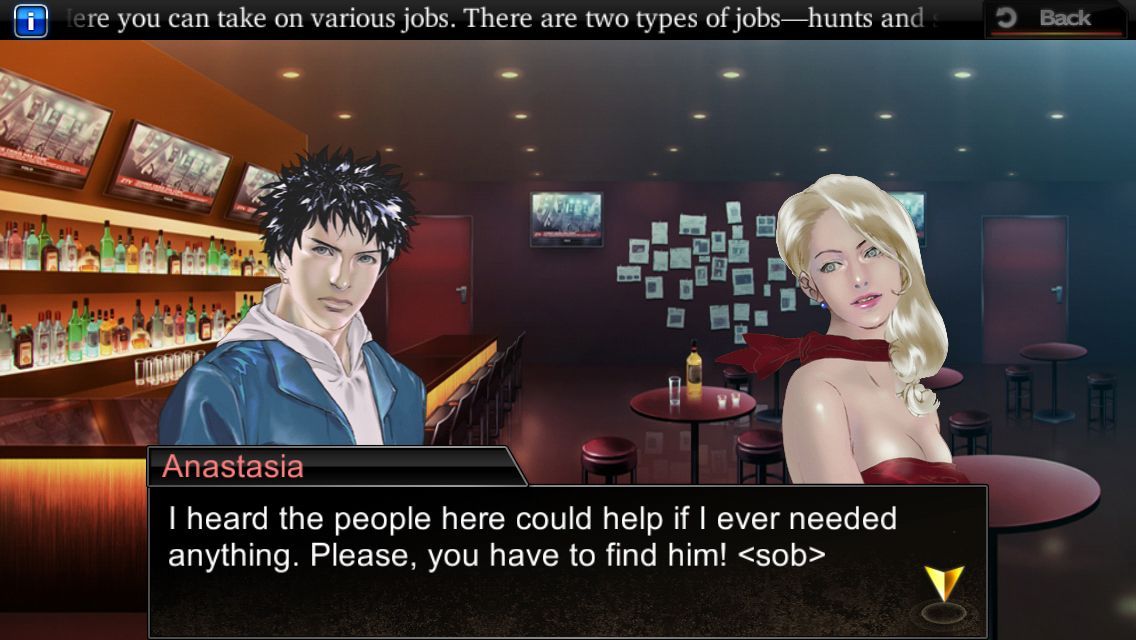 La mayoría de estas misiones las encontraremos en el bar, -el Last Drop- donde encontraremos dos tipos de trabajos: cazas y búsquedas. Las cazas son las que hemos descrito un poco más arriba, y nos forzarán a buscar zombis y monstruos de un determinado tipo en un concreto lapsus de tiempo. Las segundas son más prosaicas, y nos llevarán a mazmorras clásicas, donde iremos abriendo estancias y saqueando habitaciones en búsqueda de provisiones o supervivientes.