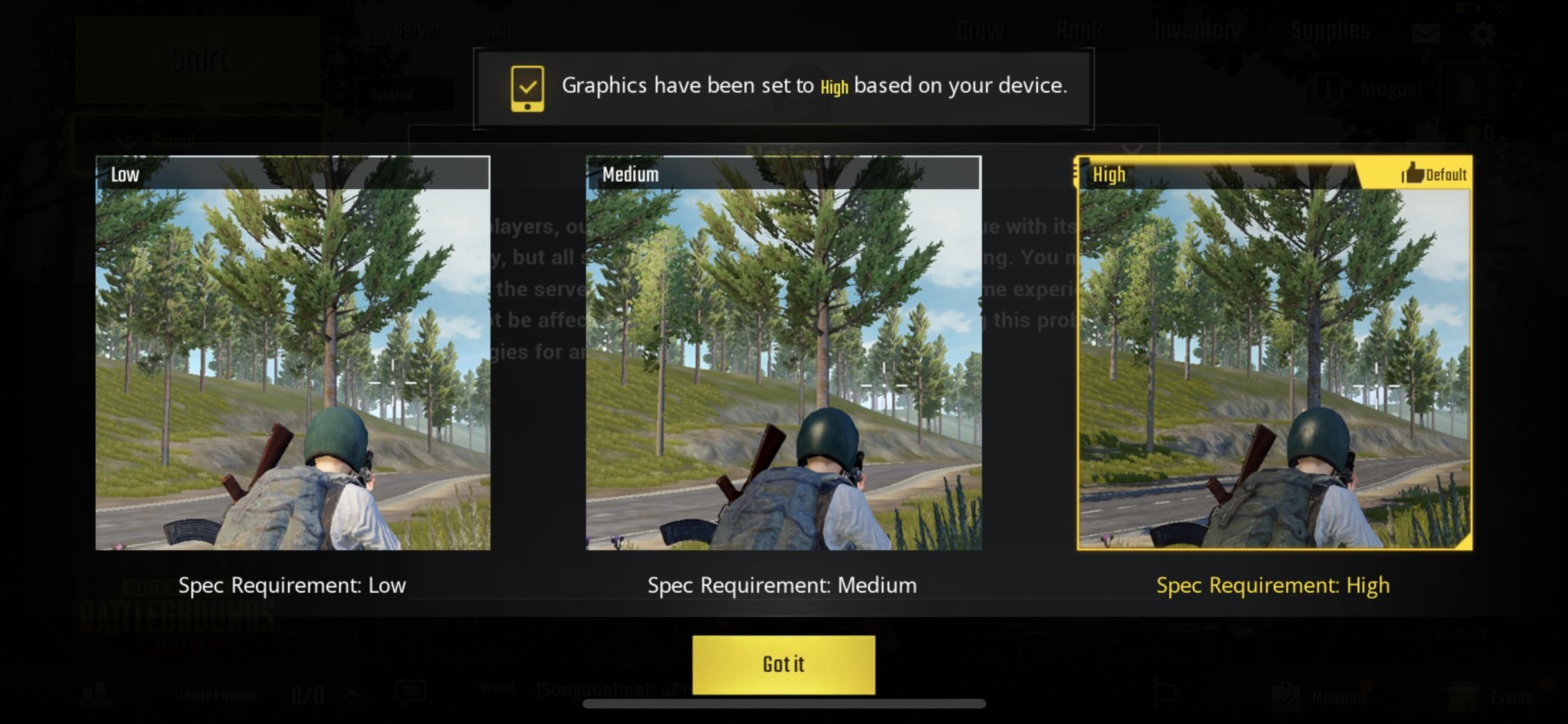 Desde el instante en el que nos tiramos del avión de cargo y aterrizamos después de desplegar nuestro paracaídas, se siente como un videojuego que no tiene nada que envidiar a sus otras versiones. A nivel de texturas, modelados, distancia de dibujado o incluso definición es sobresaliente, sobre todo teniendo en cuenta las limitaciones de las plataformas móviles. Tencent ha conseguido mantener el diseño artístico y la esencia audiovisual de las otras ediciones del juego y sin sacrificios de rendimiento. De hecho, curiosamente, el juego adecua el apartado gráfico en tres niveles de detalle muy diferenciados, intentando replicar las condiciones visuales del hardware de PC. Si queréis ver los móviles compatibles, podéis hacerlo aquí.