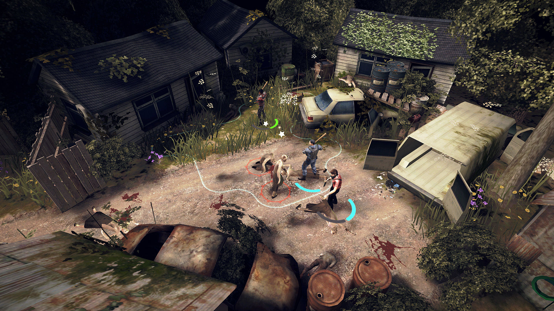 Es decir, tendremos expertos en cuerpo a cuerpo -que podrán usar bates de béisbol o cuchillos, por poner un ejemplo- y otros especializados en el ataque a distancia -con ballestas o pistolas y fusiles-, con lo que la combinación entre ambos tipos es esencial. La potencia de ambos tipos de ataques es desigual, claro está, siendo más efectivos los disparos -en un solo turno podemos derribar desde la distancia a los no muertos- y siendo aquellos que necesitan de cortas distancias, más lentos en derribar zombis.