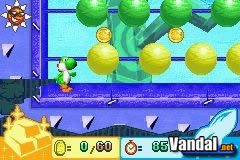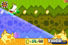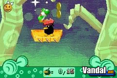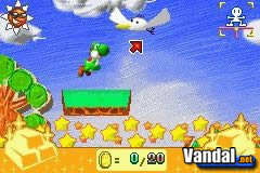 El desarrollo de esta aventura de Yoshi, que se nos cuenta en perfecto español mediante unos pareados bastante cachondos, es en líneas generales el de un plataformas de toda la vida. Movemos al personaje con la cruceta, saltamos con un botón (si lo mantenemos pulsado, Yoshi intentará flotar un segundito) y, cómo no, tratándose de él, nos zampamos lo que pillemos por el camino con el otro. Así, de sencillo, botones A y B.