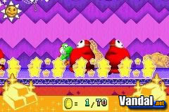 De este modo, al acabar una misión se nos presentará una pantalla informándonos de si hemos logrado o no el objetivo planteado, así como si hemos recibido alguna medalla. En función de esto, tendremos más o menos oportunidades en una ruleta, que decide si pasamos o no a un minijuego extra. En estos minijuegos se nos puede pedir que guardemos unas bombas bajo tierra, recolectemos monedas con unas macetas o toquemos unos platillos... todo ello moviendo la consola, pero de eso hablaremos más adelante. Estas alteraciones en la rutina normal del juego son muy de agradecer, pero las que más nos han gustado han sido las referentes a las transformaciones de Yoshi dentro de las fases normales.