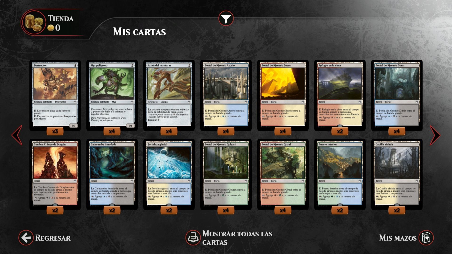 Otro aspecto que parece haberse refinado en varios puntos, es el asistente de construcción de mazos. Magic Duels: Orígenes ofrece un mejor asistente, más intuitivo, que nos puede ayudar a encontrar el punto exacto necesario para hacer arrebatador y más potente a nuestro mazo o conjunto de cartas, recomendándonos nuevas adquisiciones o combinaciones. El jugador siempre tiene la última palabra, y podemos construir el mazo a placer, pero es curioso como el constructor suele ayudarnos y guiarnos de forma bastante inteligente. Sí, echamos en falta algún buscador de textos o palabras claves, incluso de tipos de habilidad concretos, pero el asistente ha mejorado mucho de un año para otro. Magic Duels: Orígenes ofrece todo el contenido de la nueva edición, lo que en número se traduce en una ingente cantidad de cartones virtuales, así como en forma de mazos construidos de fábrica.