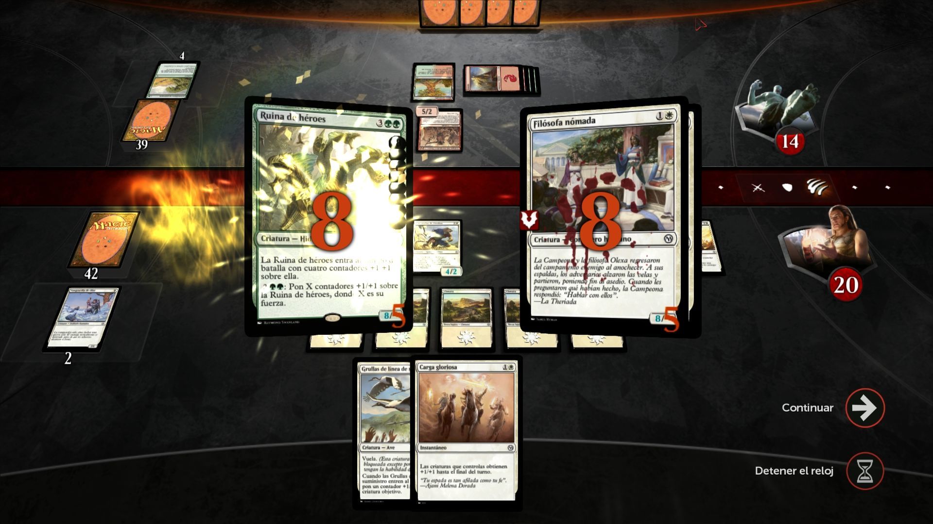 Un parámetro que había sido la queja común y constante del grueso de los jugadores en anteriores versiones y ediciones, era el ritmo. Magic: The Gathering, es un juego que puede ser muy rápido o muy sesudo y pausado en función del momento, el jugador o la estrategia, y lo cierto es que las versiones de la app no habían conseguido encontrar el punto exacto de solvencia en este aspecto. Magic Duels: Orígenes es un juego más cómodo y práctico, propenso a amoldarse a nuestro estilo de juego, permitiéndonos finiquitar a nuestro rival de una manera más rápida y frenética que en ediciones pasadas. Quizás no sea una diferencia abrumadora, y puede pasar desapercibida por más de uno, pero el jugador y usuario de Magic: The Gathering más experimentado, lo agradecerá enormemente.
