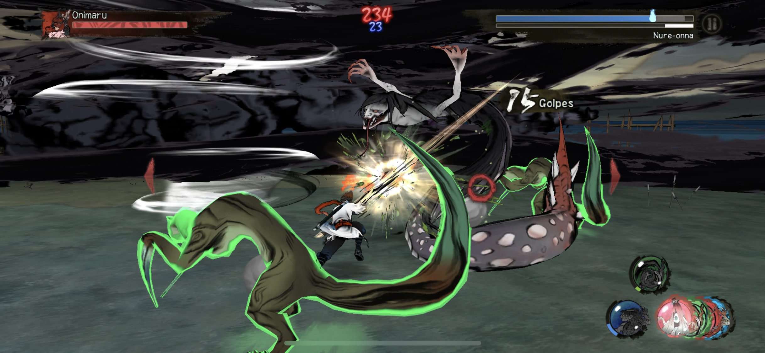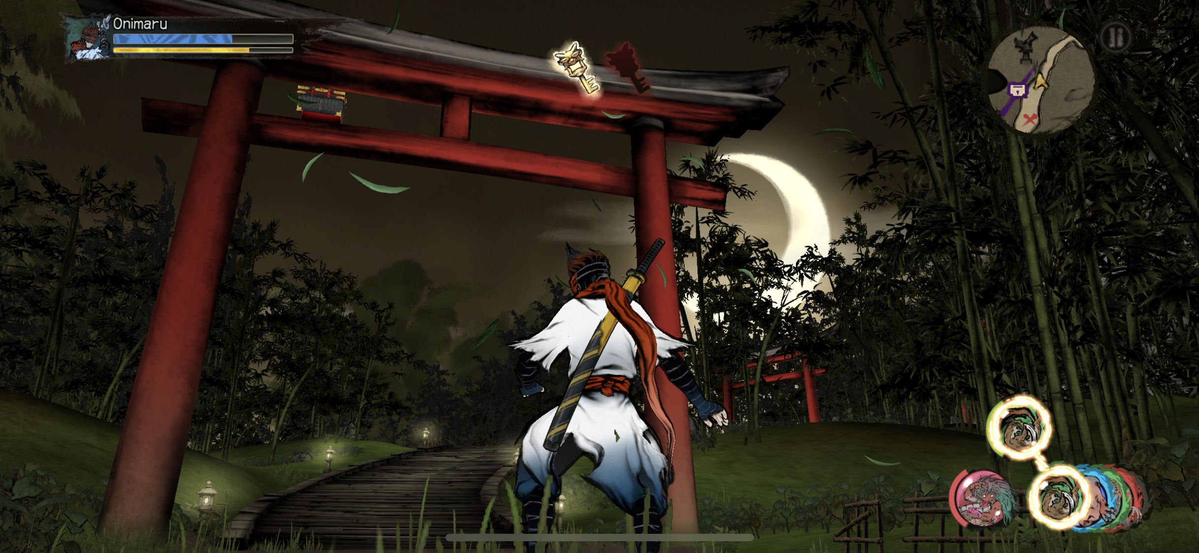 Es inevitable hacer comparaciones con Okami por su apuesta por el ukiyo-e, este reconocible estilo artístico japonés. Aunque técnicamente Okami no es un juego de PlatinumGames, muchos de los miembros tras el juego acabaron en el estudio, por lo que, en cierto modo, todo queda en casa. A nosotros nos encanta, y creemos que le sienta genial a un título así, ya que, además, no necesita demasiado para verse bien, algo ideal en móviles.