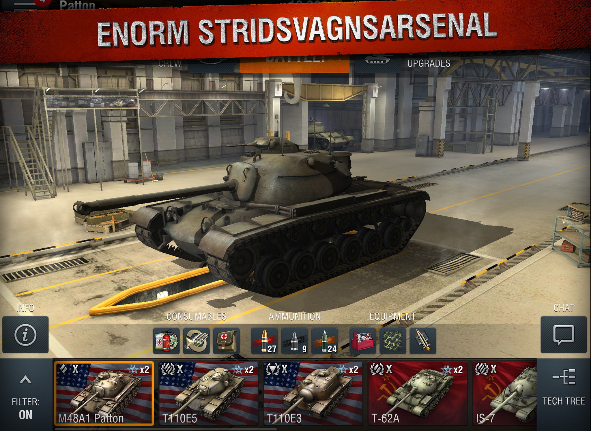 En uno de los combates más épicos que hemos vivido en nuestro periplo entre carros blindados, y mientras encabezábamos una comitiva de tanques con blindaje ligero, vimos como aquellos carros de combate más grandes se ponían delante de nosotros para proporcionarnos cobertura mientras abatíamos con munición perforante a los enemigos que venían a por nosotros. Este tipo de comportamiento -estratégico, táctico- es muy habitual, algo que dice mucho del público medio de este juego. Podemos encontrarnos con el jugador frenético y poco inteligente, claro está, pero no abunda demasiado -al menos durante los primeros días de vida-. Y si por algún casual no nos gusta el sistema de matchmaking de la app, podemos invitar a nuestros contactos y amigos y probar suerte en las distintas arenas que nos aguardan junto a alguien conocido.