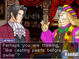 El nuevo título de la saga de abogacía de Capcom no nos ha defraudado en absoluto. Novedades, pocas, eso sí, aunque esto no sea tanto un fallo como algo muy de agradecer por los seguidores más acérrimos de la serie. Los diálogos serán tan avispados como siempre, divertidos e intrigantes, como también lo será el discurso narrativo en cada uno de los casos. Disfrutaremos de la compañía de nuestros personajes más queridos, aunque en esta ocasión veremos las cosas desde un punto de vista ligeramente diferente: el del implacable Miles Edgeworth. Eso sí, los que no dominen la lengua de Shakespeare lamentarán la falta de una localización conveniente a nuestro idioma, cosa que representa una auténtica lástima, dado el éxito de la saga entre los usuarios de la portátil de doble pantalla en nuestro país.