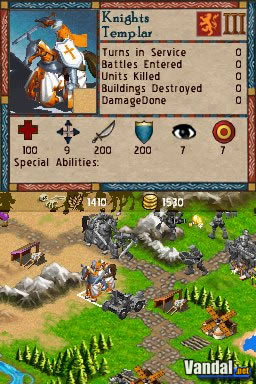 En Age of Empires 2: The Age of Kings para Nintendo DS nos encontraremos con un juego de estrategia por turnos que nos permitirá disfrutar de algunas de las batallas más importantes de la Edad Media encarnando a cinco grandes generales que alcanzaron la gloria en dicho período. Cada uno de estos líderes comandará a uno de los cinco bandos que podremos controlar en el juego, encontrándonos con las campañas bélicas de Ricardo Corazón de León al frente de los ingleses, a Juana de Arco con los franceses, a Saladino con sus sarracenos, Genghis Khan y los mongoles, o Yoshitsune Minamoto con los japoneses. En este sentido, BackBone Entertainment ha dividido la modalidad de juego principal en cinco campañas distintas compuestas cada una de ellas por una serie de misiones que irán aumentando de dificultad progresivamente. Además, cada uno de estos capítulos bélicos representará un nivel de dificultad diferente, por lo que comenzaremos la partida disfrutando de un sencillo tutorial con los franceses, para pasar luego del nivel más bajo de dificultad, el de los japoneses, al más alto, que serán las batallas de Ricardo Corazón de León.