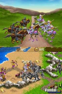 En lo que respecta al sistema de juego, como explicábamos ya no estaremos ante un título de estrategia en tiempo real basado en la popular fórmula Age of Empire, sino que en esta ocasión tendremos que realizar nuestros movimientos por turnos. Aún así, elementos del género tales como la recolección de recursos o la construcción de campamentos seguirán estando presentes, por lo que la mayor diferencia la encontraremos en los combates y no en el sistema de gestión y creación de imperios. Además, también cabe destacar el gran uso que los desarrolladores han dado a las dos pantallas de Nintendo DS; así como a las funciones táctiles de la inferior de las mismas. De este modo, toda la acción se nos mostrará en la pantalla inferior de la consola, mientras que la superior se usa para indicarnos las estadísticas de nuestras tropas seleccionadas, del entorno o de los edificios resaltados. También, en la pantalla superior veremos las animaciones de los combates, así como sencillos vídeos que nos indicarán qué debemos hacer en las misiones del tutorial.