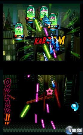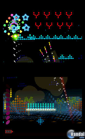 El concepto de juego, como os podéis imaginar, es en extremo sencillo: deberemos de crear fuego artificiales desde nuestra pantalla táctil mediante trazos verticales o diagonales con el stylus, intentando impactar con los mismos en los diferentes enemigos que irán surgiendo en la pantalla superior de la consola. Pero claro, no todo iba a quedar ahí: a medida que vayamos avanzando en el juego, la cosa se complica considerablemente, ya que nuestros adversarios también nos dispararán y, además, en caso de que no consigamos dar a nuestro objetivo con nuestros cohetes, éstos explotarán y se desharán en multitud de partículas que bajarán de nuevo a la pantalla inferior para acabar con nuestra vida si topamos con ellos.