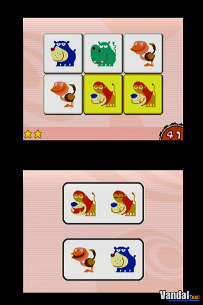 Su estética, insistimos en ello, es desenfadada y puede, de hecho, recordarnos a la de los exámenes de lógica que se suelen (o solían, vaya usted a saber) plantear en educación primaria para hacer una primera clasificación de los niños en función de su potencial intelectual. Este estilo se mantiene inalterable a lo largo de las quince pruebas que presenta Big Brain Academy, y quienes tengan en su mente el estilo simplista de la saga Wario Ware ya saben a qué se van a enfrentar en este apartado. Es una opción lógica, ya que es un apartado visual poco o nada intimidatorio, casi inocente por completo, a la par que sencillo y menos agresivo que los ya citados números y textos de aspecto serio y formal de Brain Training.