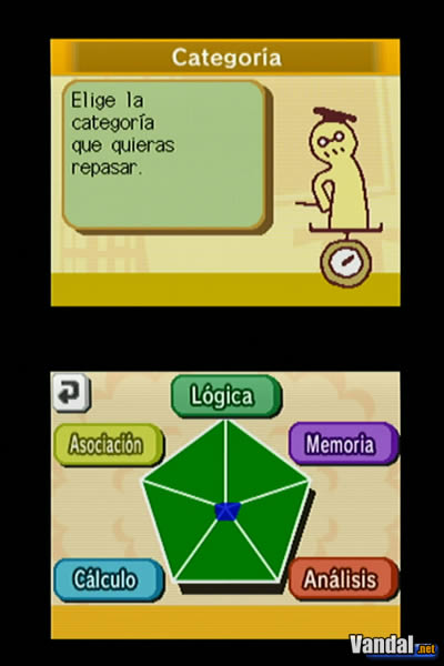 Por otro lado, la verdad es que el juego no plantea tan bien como en Brain Training el tema de superarse a uno mismo, ya que no almacena los cambios que tenemos de un día a otro (os recordamos que en Brain Training tenemos unas gráficas que podemos consultar para ver nuestra progresión o regresión a lo largo del tiempo), quizás por eso de hacerlo algo más sencillo en este sentido de cara al jugador medio y, también, conformar un producto más desenfadado.