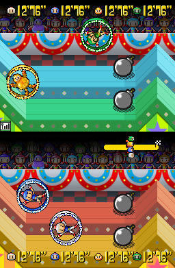 Los distintos minijuegos que presenta el juego son divertidos en su mayoría, y hacen uso de las capacidades de la consola, especialmente de la pantalla táctil. Además, muchos de ellos usarán las dos pantallas, por ejemplo mostrándonos globos en la de arriba que deberemos reventar lanzando a nuestro personaje con un tirachinas. Un detalle que nos ha gustado es que la curva de dificultad está bastante ajustada, y aunque puede que nos atasquemos en algún minijuego, por lo general la dificultad no es demasiado elevada e incluso si nos atascamos, el juego nos dará la opción de bajar la puntuación requerida a cambio de fichas. Es cierto que podemos repetir las atracciones siempre que queramos para conseguir mejores puntuaciones, pero superadas las dos primeras veces, realmente no tiene demasiados alicientes.