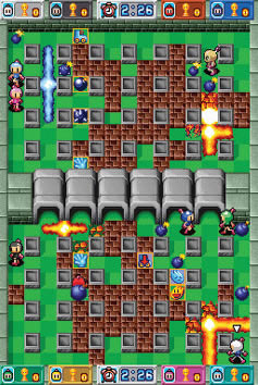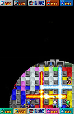 El modo batalla nos presentará el multijugador clásico de la saga Bomberman, permitiendo competir de modo local a hasta ocho jugadores incluso con una única tarjeta. En este modo, se pueden configurar prácticamente todos los parámetros, como mapa, modo de juego, si queremos que la posición de inicio sea fija o aleatoria, etc. Además de contra otros rivales, podremos jugar nosotros solos con hasta ocho personajes controlados por la máquina. Pero aparte de la conexión local, también podremos jugar online en partidas regionales o mundiales o, si lo preferimos, con algún conocido gracias a los códigos amigo. En este caso, la selección de mapa es aleatoria, estando asociado a cada mapa una configuración determinada. Tras cada combate y según como lo hayamos hecho, se nos dará una puntuación que nos permitirá ir escalando posiciones en el ranking. Lamentablemente, debemos comentar que es muy difícil jugar contra alguien, ya que hay muy pocos jugadores conectados, por lo que si alguien está interesado en el juego por este modo en especial, quizás debería pensárselo mejor.