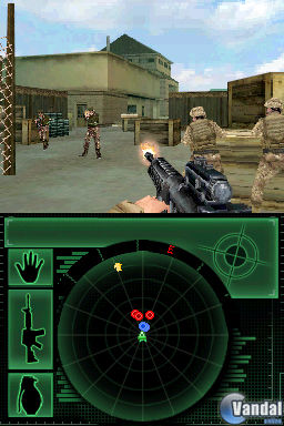 A través de la pantalla táctil cambiaremos de armas (podremos llevar dos cada vez, debiendo intercambiarlas por otras en caso de que queramos recoger alguna sobre el terreno de juego), así como de granadas. Cada vez que podamos interactuar con algún elemento del entorno, deberemos de presionar, a su vez, sobre el icono dispuesto en la pantalla inferior para tal efecto. La verdad es que, en general, el juego se controla divinamente, aunque al principio puede costarnos controlar todas las opciones en la pantalla táctil. Dispararemos con los botones laterales y, en caso de que seamos zurdos, los controles de movimiento pasarán a los botones frontales de la consola.