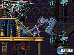 Todo el control responde perfectamente a nuestras órdenes y si algún botón no acaba de hacernos el gusto por su disposición, lo podemos modificar libremente. La principal variación está en el tiempo de respuesta de nuestras armas, ya que las hay de muy diverso tipo, desde dagas (escasa potencia y alcance, pero gran rapidez) hasta mazos enormes (gran fuerza y alcance, pero lentas), así que en este sentido habrá que ir buscando qué tipo de arma se acomoda a nuestro estilo de juego y, también, a los diferentes enemigos que pululan por las extensas zonas del mapeado. Como es habitual en las entregas de la serie, habrá un importante factor de plataformas y exploración, limitado por una jugabilidad cuya cabeza visible es la saga Metroid. Y es que ya es normal que los juegos de Castlevania, sobre todo los que conservan –excelentemente- el planteamiento bidimensional, nos obliguen a dar vueltas por el mapa mientras buscamos una vía alternativa para acceder a zonas antes no exploradas y conseguir un objeto o habilidad (que conseguiremos tras eliminar al enemigo correspondiente) que sirva para poder llegar a otras zonas nuevas y, cómo no, volver a las ya visitadas para llegar a otros sitios nuevos.