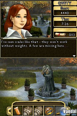 Dentro del juego, nos enfrentaremos tanto a puzles en los que deberemos de combinar objetos que hayamos recogido en los diferentes escenarios de la aventura, como viene a ser costumbre en los juegos de aventura gráfica de apuntar y pulsar al uso, como a diferentes ejercicios de percepción, en los que deberemos de encontrar una serie de objetos determinados en una lista dentro de escenarios de cierto tamaño, de manera muy similar a como hicimos en otra versión para Nintendo DS de una vetusta saga de ordenador: Mystery Case Files.