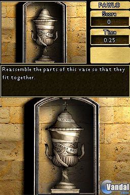 Pero, además de este tipo de actividades, durante la aventura nos embarcaremos en diferentes minijuegos, los cuales aparecerán cada vez que debamos encontrar un objeto oculto, abrir una cerradura o accionar un mecanismo dentro de los diferentes escenarios y entornos. Todo el control dentro del juego lo realizaremos a través de la pantalla táctil, y la verdad es que el mismo ha sido muy notablemente desarrollado: movernos por los escenarios y seleccionar los diferentes objetos que encontremos será sencillo, gracias a la precisión del control táctil. Lo mismo pasará dentro de los diferentes minijuegos, en los que encontraremos laberintos, búsqueda de diferencias entre dos imágenes, reconocimiento de parejas de colores y formas, juegos de precisión con el stylus, e incluso juegos de unir diferentes casillas con figuras de la misma forma y color, de manera similar a clásicos del género puzle como Tetris o Bejeweled.