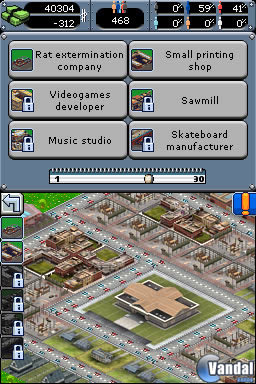 Manejaremos prácticamente la totalidad del juego mediante el lápiz táctil, aunque algunas opciones las podremos seleccionar mediante la cruceta y los botones de la consola. Fundamentalmente, utilizaremos la cruceta para manejar la rotación lateral del mapa y el zoom del juego, con lo que podremos ver una vista más cercana y detallada o más alejada y generalizada de nuestra ciudad. El resto del control lo realizaremos a través del stylus, tanto en el desplazamiento por el mapa –deslizando el lápiz a un lado y otro de nuestra pantalla táctil- como en la construcción (o demolición) de edificaciones, a través de un sistema de menús interactivos de muy fácil manejo.