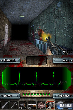 Veremos la acción del juego en la pantalla superior de la consola, mientras la pantalla inferior está destinada al manejo de la visión de nuestro personaje mediante el stylus, así como también mostrará nuestro estado de salud, y nos permitirá acceder a algunas opciones dentro del juego, como la de visualizar los diferentes mapas de cada zona del edificio- los cuales se encuentran repartidos en cada una de las zonas correspondientes- o abrir las puertas que se nos permita, así como recoger y examinar los diferentes objetos que encontremos.