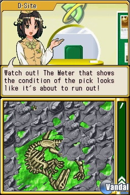 Una vez con los fósiles en nuestro poder, deberemos de dirigirnos hasta los cuarteles generales de cada zona del mapa, donde – aparte de rellenar la salud de nuestros dinosaurios y las baterías de nuestra radar que, por cierto, también se gastan con el uso – deberemos de restaurar los fósiles que poseamos antes de convertirlos en dinosaurios vivos, gracias al uso de nuestro querido lápiz táctil, el cual nos ayudará a separar la piedra y el polvo del hueso de nuestro deseado dinosaurio. Todo este proceso nos recuerda mucho a otro juego de la Nintendo DS, Spectrobes, en el que debíamos de convertirnos en arqueólogos espaciales. En este caso, todo viene impregnado con el halo de lo antiguo, aunque la experiencia de juego es muy similar.