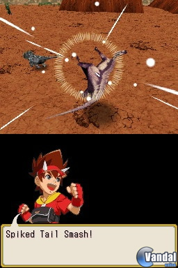 Así, mientras en la pantalla superior vemos los dos dinosaurios dándose de lo lindo, en la pantalla inferior de nuestra consola veremos las correspondientes imágenes acompañadas de texto de nuestro héroe y nuestro adversario comentando las jugadas. Y éste último nos dará pistas sobre su próximo movimiento a seguir, del tipo: "no volveré a realizar el mismo movimiento", o "superaré ese movimiento crítico". Por tanto, con pistas cada vez más complejas, al final seguir nuestra lógica deductiva se convertirá en la mejor opción de combate, y ahí es cuando el juego comienza a resultar realmente entretenido.