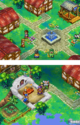 Al estar dentro de un pueblo, un castillo, o una mazmorra, la pantalla superior mostrará, por defecto, una extensión de la imagen de la pantalla principal de juego, esto es, la pantalla inferior de nuestra consola. Toda la acción del juego se desarrollará en ella, aunque la funcionalidad táctil de la misma es inexistente, dado que la jugabilidad del título que nos ocupa es bastante clásica y no ha dado ningún uso al stylus.