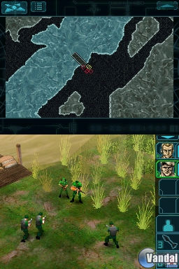 Por otro lado en la pantalla inferior es donde se desarrollará toda la acción ya que el control principal se hace mediante nuestro stylus (exceptuando el menú de pausa que es con el botón start y la selección de la unidad con el botón select) lo que significa que para mover a nuestros personajes tendremos que señalar en la pantalla táctil el punto al que queramos ir y, de igual forma, cuando nos topemos con algún terrorista de la zona deberemos señalarlo para dispararle y eliminarlo. Sin embargo, nuestros hombres son la élite de la guerra antiterrorista, así que poseen ciertas habilidades especiales que les hace marcar diferencias entre ellos.