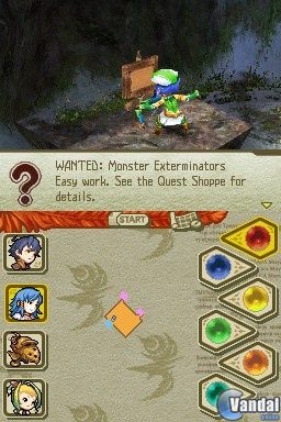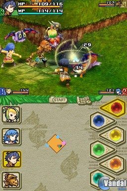 El manejo de los personajes de nuestro equipo durante la acción del juego lo realizaremos, fundamentalmente, a través de la cruceta y los botones de nuestra consola, aunque los diferentes menús del título podremos gestionarlos a través de la pantalla táctil, de la misma manera que podremos seleccionar los poderes mágicos que queramos utilizar en cada momento o el personaje que deseemos controlar dentro de los integrantes de nuestra compañía mediante el uso del lápiz táctil. Un sistema de juego claramente clásico, pese a la integración del uso de la pantalla táctil, pero que funciona a la perfección, obteniendo un sistema de juego sencillo y directo que satisfará tanto a los más exigentes aficionados al género como a los jugadores no iniciados.