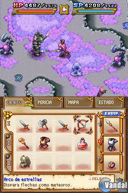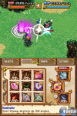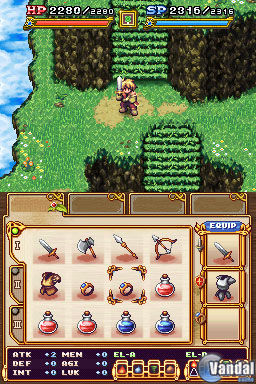 Por otro lado, el uso de la pantalla táctil estará basado íntegramente en la sucesión de menús en el videojuego. Es decir, controlaremos al personaje con los botones de la Nintendo DS, mientras que con la pantalla inferior podremos utilizar objetos, asignar hechizos o habilidades, ver los atributos del personaje y consultar el mapa de la zona. El mapa será un aliado más que necesario para andar por la realidad paralela en From the Abyss, pues la desarrolladora japonesa ha creado un sistema de mazmorras aleatorio, por lo que cada partida será diferente en cuanto a escenarios se refiere. Lamentablemente, estamos ante un título que, debido a su planteamiento aleatorio, sacrifica la diversión de crear mazmorras específicas -y, por ende, divertidas-, por lo que enseguida veremos pantallas y recorridos repetidos.