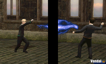 Otro de los minijuegos que dan una nota de interés al conjunto es la lucha entre magos. Con elementos del rol por turnos, deberemos de coger la consola de manera vertical y veremos a la izquierda nuestros oponentes (la mayor parte de las veces, Malfoy y sus amigos), y a la derecha, en la pantalla táctil, a Harry y compañía. Así, deberemos elegir el oponente al que queramos atacar, el personaje con el que le atacaremos y el hechizo que lanzaremos, para luego invocarlo dibujando una forma o uniendo diferentes puntos entre sí, a medida que estos aparecen en pantalla, sin levantar el stylus de la misma. No está mal el sistema de enfrentamiento, y da una nota de originalidad al juego, pero los enfrentamientos son demasiado fáciles, y a no ser que erremos repetidamente al invocar los hechizos, tenemos el éxito asegurado.