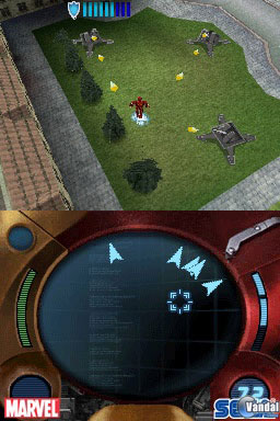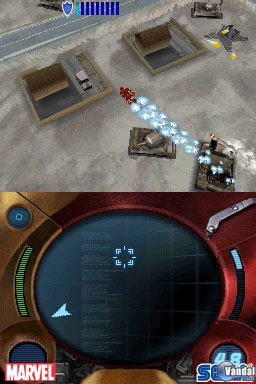 Controlaremos a nuestro personaje, tanto por tierra como por aire, mediante la cruceta de control, en lo que respecta al movimiento del mismo sobre el terreno de juego. La acción del juego la veremos en la pantalla superior de la consola, mientras que la pantalla táctil nos servirá para controlar las habilidades de Iron Man. Dispararemos nuestros rayos repulsares apretando con el lápiz táctil en la zona de la pantalla inferior correspondiente a la dirección en la que queramos dirigir nuestro rayo. Además, contaremos con dos pulsadores a un lado y otro de la pantalla inferior, correspondientes a los misiles y al mono-rayo que sale del pecho de la armadura de nuestro personaje, uno de los ataques más poderosos del juego.