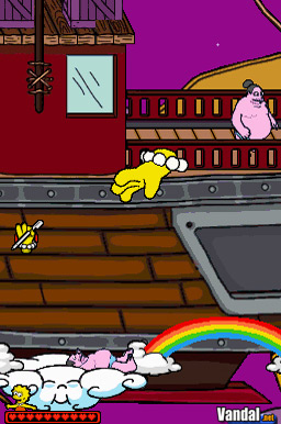 Por último, cabe señalar que la jugabilidad del título es, en general, muy buena. Quizás algunos movimientos nos resultarán un pelín complicados de dominar al principio, como el impulsarnos por encima de las rampas situadas en el escenario con Homer convertido en una bola de carne, pero en general todo entra dentro de lo que estamos acostumbrados a ver en cualquier juego de plataformas. Eso sí, la pantalla táctil tendrá, en muchas ocasiones, un papel muy relevante, añadiendo un punto de originalidad al manejo del juego.