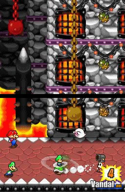 Pero como aquí contaremos con Mario y Luigi por duplicado, habrá que tener en cuenta más cosas. Sí, pueden luchar por separado, pero juntos sus opciones aumentan. Así, al lanzarnos a saltar sobre un enemigo con Mario, puesto que éste llevará a la chepa a Bebé Mario, si antes de impactar pulsa el botón X (el correspondiente al bebé), luego podrá impactar otra vez pulsando A. Asimismo, cuando los bebés y los adultos están juntos, podrán usar el martillo, también con un movimiento combinado de forma similar al expuesto para los saltos. Y por si esto no fuera poco, los ataques que se realizan con los objetos tándem también varían su desarrollo para implicar en la acción a los bebés. El resultado es más complejo, pero su efectividad es superior.