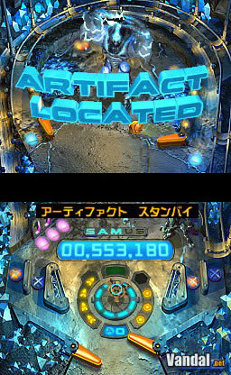 Según avanzamos, además, conseguimos armas, como misiles o las bombas, que podemos usar en determinadas situaciones. El control es en todos los casos muy sencillo, ya que hay incluso varias opciones. Los tacos los movemos, sin ir más lejos, con la cruceta y los botones frontales (aunque aconsejaríamos optar por usar los botones laterales de la consola, L y R), y las bombas, por ejemplo, se usan con el botón Y. Hay también la posibilidad de golpear la mesa, como en un pinball real, para modificar un poco la ruta de la bola. Para ello, basta con pasar el dedo sobre la pantalla táctil, lo que es una solución bastante ingeniosa en realidad.