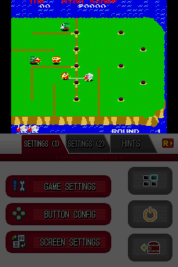 No obstante, donde realmente se han lucido los desarrolladores de Namco Museum DS es en el apartado de opciones de juego en la sección de máquinas recreativas. Mientras jugamos a las recreativas en una de las pantallas de nuestra portátil, por defecto la pantalla superior de la consola, en la otra pantalla contaremos con un suculento menú de opciones, el cual podremos manejar mediante el stylus, y que ampliará exponencialmente las posibilidades del título.