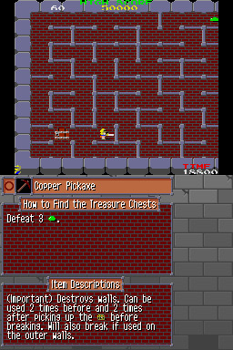 Y, por último, The Tower of Druaga, un laberíntico juego en el que controlaremos a un aguerrido caballero que deberá enfrentarse a un sinfín de mazmorras para rescatar a la hermosa princesa de la historia, consiguiendo las diferentes llaves para las puertas de cada nivel, además de los diferentes cofres del tesoro que nos otorgarán objetos necesarios para superar los estadios más avanzados de la aventura.