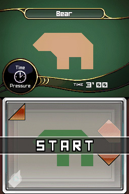 Neves nos demuestra la austeridad de su diseño desde el primer momento de juego, cuando accedemos al menú de inicio del título. Pero eso no tiene por que ser malo: el hecho de que se base en un juego como el Tangram ya implica que el concepto de juego sea sencillo, aunque esto no está reñido con el hecho de que nos encontremos frente a uno de los títulos de puzle más adictivos de los que hemos podido disfrutar en nuestra Nintendo DS hasta la fecha. En nuestro primer contacto con el juego, se nos explicará mediante un breve tutorial cómo debemos manejarnos en el juego con las fichas del mismo, y en el que se nos mostrará cómo mover y rotar las piezas del puzle para poder formar las diferentes figuras o siluetas del juego.