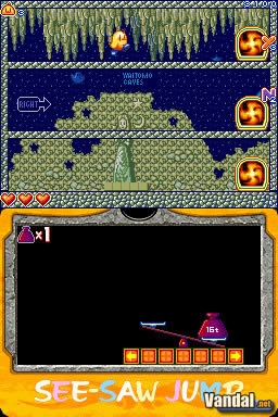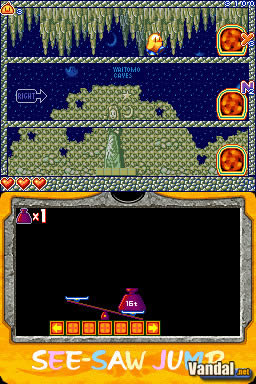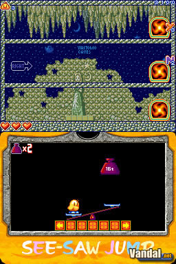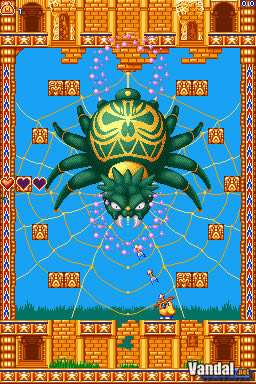 Con todo esto, deberemos recorrer una gran variedad de escenarios aprovechando las citadas habilidades de nuestro héroe, con una sutil diferencia con respecto a lo visto en el clásico de Taito. En esta revisión del original, como explicábamos al principio del artículo, nos encontraremos con una serie de situaciones que requerirán del empleo de la pantalla táctil de Nintendo DS, aunque como decíamos, su uso no será decisivo en el desarrollo de la acción. De este modo, en determinados momentos tendremos que recurrir a la pantalla inferior de la consola para girar una manivela, usando para ello el stylus, y de este modo abrir nuevos pasadizos; o intentar que nuestro héroe no pierda el equilibrio cuando se encuentre sobre la cuerda floja, ayudándole a que la vara que le ayuda a mantener el equilibrio se encuentre firme, y no ladeada. También habrá zonas en las que en la pantalla inferior se nos mostrará la imagen de un enemigo, y el número de los mismos que deberemos exterminar para proseguir en la aventura; e incluso una misma imagen de lo que nosotros estemos viendo en la pantalla superior, eliminando así temporalmente el mapa del escenario que aparecerá en la táctil de Nintendo DS, indicándonos que debemos encontrar la diferencia entre las dos imágenes para lograr así abrir un portal de salida.