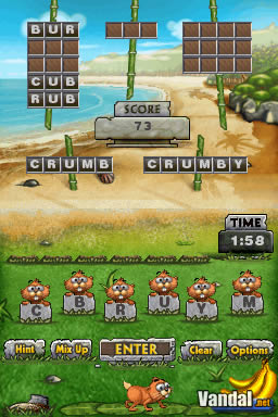 En cuanto a la jugabilidad, nos encontramos con una gran pega: el idioma. Todas las instrucciones durante el juego están en inglés, y el hecho de que Word Whomp sea un juego de crear palabras es todo un condicionante para su disfrute si no se conoce el idioma a un cierto nivel. Por otro lado, los controles son sencillos y todos se realizan a través del stylus, aunque en ocasiones no responden como debieran, como cuando en ocasiones al girar suavemente la ruleta hacia un lado, misteriosamente comienza a girar a toda velocidad hacia el lado opuesto.