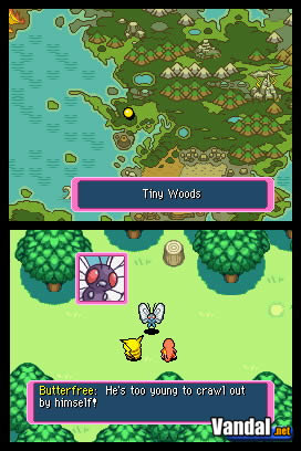 Con respecto a las diferencias existentes entre las dos versiones del juego, como ya comentamos en el avance que realizamos hace unas semanas serán mínimas, siendo la versión para la portátil de doble pantalla la que reciba más extras. En este caso, en Nintendo DS nos encontraremos con que la pantalla superior se usará para mostrar el mapa de la región si nos encontramos en nuestro centro de operaciones o en el pueblo, mientras que en las mazmorras se nos ofrecerán los datos relacionados con los cuatro Pokémon que combatan junto a nosotros. También, para no perdernos entre tantas salas clónicas, que será otro de los defectos del juego, ChunSoft ha incluido un mapa de las mazmorras que aparecerá sobre la pantalla, y que se irá dibujando conforme vayamos descubriendo las distintas zonas del entorno. Otra lógica diferencia la encontraremos en la posibilidad de controlar a nuestro protagonista pulsando sobre la pantalla con el Stylus, aunque en la práctica resulta más sencillo dirigir la acción con el sistema clásico de botones. Por último, como apuntábamos antes, podremos intercambiar criaturas y objetos en ambas versiones, usándose en Nintendo DS el sistema de conexión inalámbrica, mientras que en Game Boy Advance habrá que usar el cable Link.