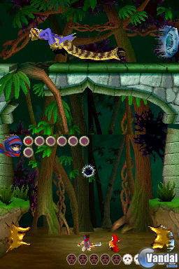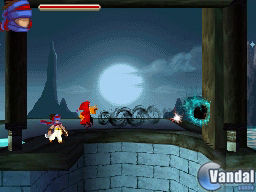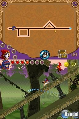 Toda la acción se mostrará en la pantalla de abajo, mientras que en la superior veremos un mapa del nivel y la posición aproximada dónde se encuentra el príncipe. Este mapa, a pesar de ser bastante esquemático, resulta muy útil, ya que nos enseña la situación de rubís, puertas especiales o el final de la pantalla. De cualquier forma, aunque se agradece, el mapa no es demasiado necesario, ya que los niveles son bastante lineales, y no hay muchas dudas respecto a lo que hacer. En ese sentido quizás el juego es demasiado simple y en ocasiones peca de repetitivo, pero la mecánica resulta divertida, por lo que aunque quizás se echa de menos escenarios algo más complejos, el juego funciona tal y como está.