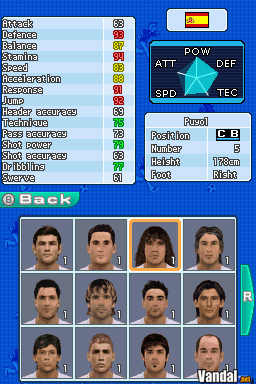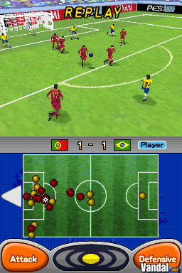 A la hora de jugar, como decíamos antes, el título nos propone un sistema de control tradicional en el que todos los botones de la consola entran en juego. Nos movemos, por supuesto, con la cruceta digital (resultando un poco imprecisa) y los botones frontales se emplean para los distintos pases y disparos a puerta, así como para los robos de balón, y demás, en función de si estamos en posición ofensiva o defensiva. Así, al atacar el botón A nos sirve para centrar, B para el pase corto, X para el pase adelantado e Y para el disparo, mientras L nos permite hacer amagos y R esprintar; en la defensa, cortamos con A, presionamos con B, accedemos al portero con X y presionamos con dos jugadores usando Y. En esta situación, el botón L nos cambia de jugador. Por supuesto, todo esto es configurable, como lo que habrá en la pantalla inferior: un radar, o bien la alineación.