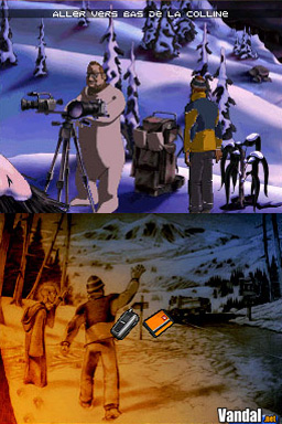 Lo primero que encontramos es el tamaño de la pantalla donde transcurre la acción, que es, evidentemente, mucho más pequeña que un monitor normal y corriente. De esta manera se han respetado todos y cada uno de los escenarios del juego, adaptándolos perfectamente a las dimensiones de la pantalla inferior de la consola. Como era de esperar, los escenarios han quedado bastante más pequeños que en su versión original, por lo que se ha provisto al juego de un modo perfecto para no pasar por alto ningún detalle: el zoom. Dicha ampliación del escenario ocurre cuando tocamos la pantalla con el lápiz de la consola, pudiendo arrastrarlo para recorrer parte del escenario y encontrar pistas, objetos y detalles que no serían posibles de ver en el modo normal.