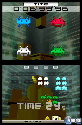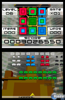 Pero claro, no todo acaba aquí: por otra parte, conseguiremos bonificaciones en caso de destruir columnas y filas de invasores con la misma silueta o con el mismo color, bonificaciones que se pondrán de manifiesto en forma de bonificaciones de la puntuación, así como en forma de algunos ataques temporales de gran potencia: si destruimos a cuatro invasores azules seguidos, conseguiremos un potente láser; en caso de que destruyamos a cuatro invasores verdes, conseguiremos un disparo cuádruple de gran potencia y alcanza; por último, en caso de que consigamos destruir a cuatro invasores rojos, conseguiremos potentes bombas que darán buena cuenta de las hordas enemigas, destruyendo a racimos enteros de enemigos con una sola explosión. Para esta ocasión, por otra parte, contaremos también con alienígenas negros que, en caso de que los destruyamos de cuatro en cuatro, nos ofrecerán un impenetrable escudo temporal.