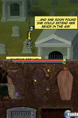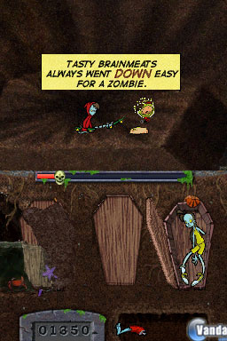 Y para rizar el rizo, deberemos de ir recuperando por cada nivel las partes dispersas del zombi que veremos en la esquina inferior derecha de nuestra pantalla táctil, cosa que nos servirá para recuperar toda la vida de una vez, aparte de añadir un poco más de longitud a nuestra preciada barra de salud. En definitiva, un montón de opciones de juego reunidas en un solo título, cosa que hace que, a pesar de que no sea un juego especialmente original en su concepto, el jugador disfrute ampliamente con él, se divierta con sus salidas de tono y su humor macabro (eso sí, apto para menores) y quiera llegar hasta el final del juego sólo para poder ver el divertido desenlace de la historia que se nos ha ido contando, durante todo el título, como si de un cómic animado se tratase.