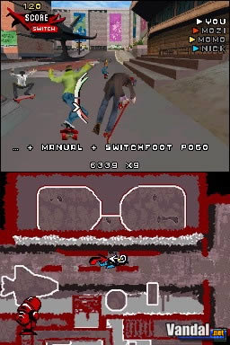 En ese sentido, y hablando específicamente de la plataforma que nos ocupa, Nintendo DS, se ha vuelto a los orígenes con sus enormes pistas acondicionadas para practicar el skating, abandonando el planteamiento que propuso Downhill Jam en su día.